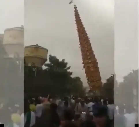 காற்றில் கவிழ்ந்த 100 அடி உயர தேர்- இருவர் பலி