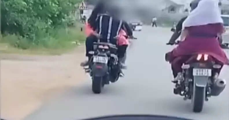 தெலங்கானா மாநிலம் ஐதராபாத் பழைய நகரமான பஹாடி ஷெரீப் சாலையில் பைக்கில் இளைஞர்கள் ஓட்டி சென்று கொண்டுருக்க முன்னாள் அமர்ந்து கொண்டுருக்கும் இளம் பெண் பைக்கை ஓட்டி செல்லும் இளைஞருக்கு முத்தம் கொடுத்து கொண்டு செல்கிறார். இதனை சிலர் செல்போன் கேமராவில் பதிவு செய்த நிலையில் சிலர் இந்த சமுதாயத்திற்கு என்ன ஆனது என்று திட்டி கொண்டே சென்றனர்.