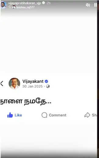 இந்நிலையில் காங்கிரஸ் இருக்கும் கட்சியில் கூட்டணி வைக்க மாட்டோம் எனக் கூறிய நிலையில் இப்போது தேமுதிக திமுக உடன் கூட்டணி வைத்ததால் அதன் கூட்டணி கட்சிகளில் ஒன்றான காங்கிரஸும் அதனுடைய இணைந்து இருப்பதால் தேமுதிகவை விட்டு விஜய் பிரபாகரன் விலகுவதாக அறிவிக்க உள்ளதாக தகவல்கள் தெரிவிக்கின்றன. இதனிடையே விஜய பிரபாகரன், திமுக கூட்டணியில் தேமுதிக இணைந்ததை அடுத்து, 'நாளை நமதே' என இன்ஸ்டா ஸ்டோரி வைத்துள்ளார்.