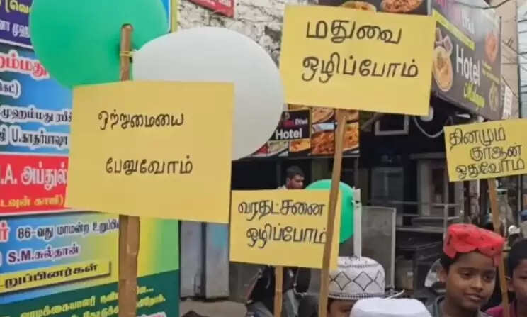 "சமூக ஒற்றுமையை காப்போம்" ,"சகோதரத்துவத்தை போற்றுவோம்", "மதுவை ஒழிப்போம்", "வரதட்சணையை ஒழிப்போம்" என்ற வாசகங்கள் அடங்கிய பதாகைகளை சிறுவர்,சிறுமியர் ஏந்தி ஊர்வலமாக சென்றனர்.