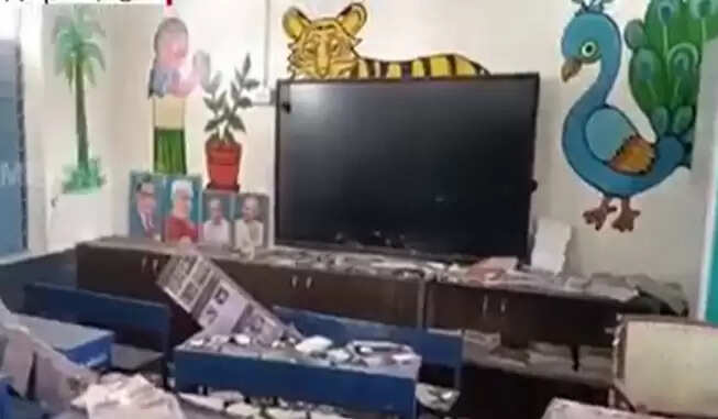 அரசு பள்ளியில் மேற்கூரை இடிந்து விழுந்ததால் பரபரப்பு