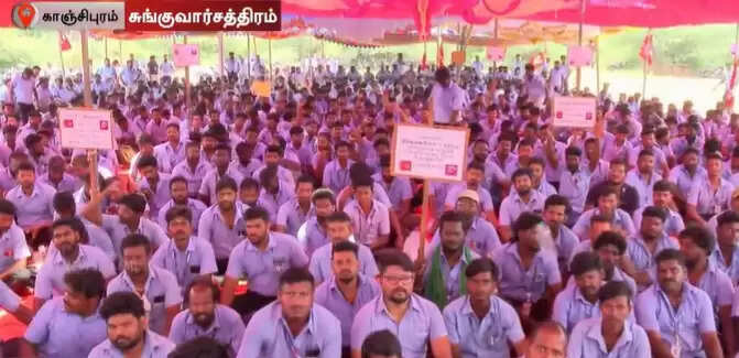 காஞ்சிபுரம் மாவட்டம் சுங்குவார்சத்திரத்தில் சாம்சங் நிறுவனம் செயல்பட்டு வருகிறது. இந்த நிறுவனத்தில் சிஐடியு சார்பில் தொழிற் சங்கம் தொடங்கப்பட்டது. இந்த சங்கத்தை அங்கீரிக்க வேண்டும், தொழிலாளர்களுக்கு ஊதிய உயர்வு வழங்க வேண்டும் உள்ளிட்ட கோரிக்கைகளை வலியுறுத்தி தொழிலாளர்கள் தொடர் போராட்டங்களில் ஈடுபட்டு வந்தனர். இதுதொடர்பாக தொழிலாளர் துறை உட்பட பல்வேறு தரப்பினருடன் நடைபெற்ற பேச்சுவார்தைகள் தோல்வியில் முடிந்தன. தற்போது 20 நாட்களுக்கு மேல் சாம்சங் ஊழியர்கள் போராட்டத்தில் ஈடுபட்டு வருகின்றனர்.