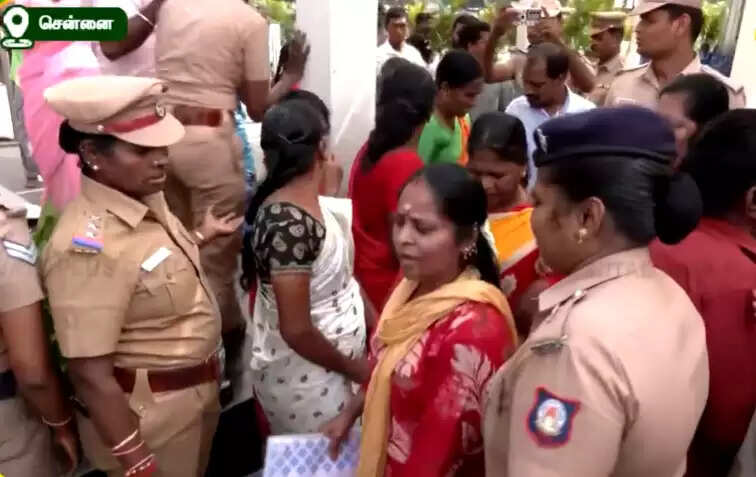 சென்னை மாநகராட்சி மண்டலம் 5, 6 சேர்ந்த தூய்மை பணியாளர்கள் ரிப்பன் மாளிகைக்கு மனு அளிக்க வந்த போது, அனுமதியில்லாமல் கூட்டமாக செல்ல முற்பட்டதால் போலீசார் கைது செய்தனர்.