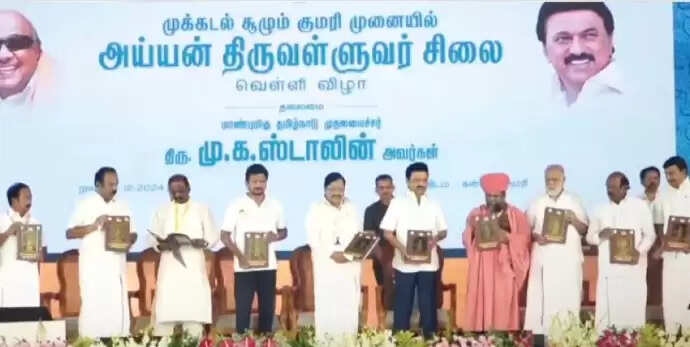 விழாவில் பேசிய முதலமைச்சர் மு.க.ஸ்டாலின், “அய்யன் திருவள்ளுவர் சிலைக்கு செல்லும் சுற்றுலா பயணிகளுக்கு என மூன்று புதிய படகுகள் வாங்கப்படும். அவற்றிற்கு காமராஜர், மார்ஷல் நேசமணி மற்றும் ஜி. யு. போப் ஆகியவர்களின் பெயர்கள் சூட்டப்படும் . ஒவ்வொரு மாவட்டத்திலும் திருக்குறள் பயிற்சிவிப்பவர்களுக்கு தொடர் பயிற்சி அளிக்கப்படும். அதற்காக மாவட்டம் தோறும் ஆண்டுக்கு 3 லட்சம் ரூபாய் நிதி ஒதுக்கப்படும். ஒவ்வொரு ஆண்டும் டிசம்பர் மாதம் கடைசி வாரம் குறள் வாரமாக அறிவிக்கப்படும். ஆண்டுதோறும் 13 பேருக்கு கலை இலக்கிய அறிவு சார் விருதுகள் வழங்கப்படும். கன்னியாகுமரி பேரூராட்சி நகராட்சியாக தரம் உயர்த்தப்படும்” என புதிய அறிவிப்புகளை வெளியிட்டார்.