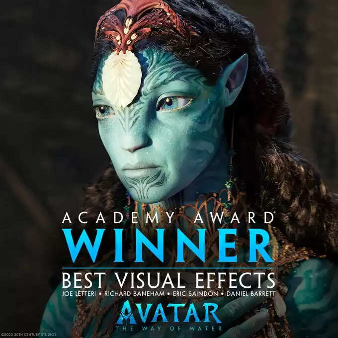சிறந்த Visual Effects பிரிவில் ஆஸ்கர் விருதை வென்றது ‘அவதார் தி வே ஆஃப் வாட்டர்’ படம். ஜோ லெட்டரி, ரிச்சர்ட் பேன்ஹன், எரின் சேண்டன், டேனியல் பேரட் ஆகியோர் ஆஸ்கர் விடுதினை பெற்றுக்கொண்டனர்..