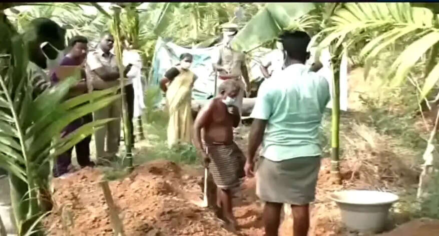இந்நிலையில் கடந்த 20 ஆம் தேதி முதல் எந்த ஒரு போன் காலும் வராததாலும், 22 ஆம் தேதி போன் சுவிட்ச் ஆப் செய்துள்ளதாலும் மனைவிக்கு சந்தேகம் எழுந்ததால் சந்தேகத்தின் அடிப்படையில் மனைவி பல இடங்களில் தேடியும் கிடைக்காததால் கடந்த 1-4-2026 ஆம் தேதி வாழப்பாடி காவல் நிலையத்தில் புகார் கொடுத்தார். புகாரின் பேரில் மணிகண்டன் மாயமாகியதாக வாழப்பாடி போலீசார் வழக்கு பதிவு செய்து போலீசார் தீவிர விசாரணையில் ஈடுபட்டு வந்தனர். மேலும் அவரது தாய் ஜோதி, தந்தை சின்னப்பன் ஆகியோரை அழைத்து விசாரணை செய்ததில் கடந்த 23ஆம் தேதி தாய்க்கும், மகனுக்கும் தகராறு ஏற்பட்டதாகவும்,மேலும் தாயிடம் குடிக்க பணம் கேட்டு தகராறு ஈடுபட்டதாகவும்,பணம் இல்லை என்று மகனை தள்ளி விட்டதாகவும், கீழே விழுந்ததில் தலையில் பின்புறம் அடிபட்டு சம்பவ இடத்திலே இறந்ததாகவும், பின்பு தாயும் தந்தையும் அருகில் உள்ள வீரமுத்து என்பவர் உதவியுடன் தனது பாக்கு தோட்டத்தில் புதைத்தது போலீசார் விசாரணையில் தெரிய வந்துள்ளது.