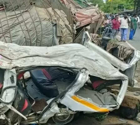 திருச்சி அருகே சாலையோரம் நின்ற ஆம்னிவேன் மீது லாரி கவிழ்ந்து விபத்து... சிறுமி உள்பட இருவர் பலி!