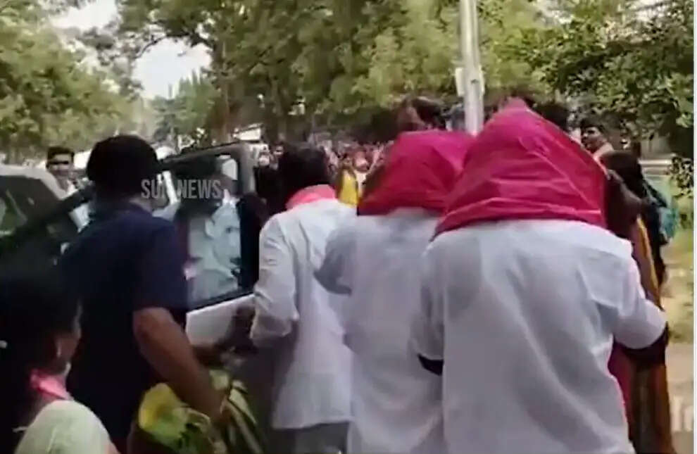 தெலங்கானாவில் வாக்கு சேகரிக்க பிரச்சாரத்தில் ஈடுப்பட்ட வேட்பாளர் உள்ளிட்ட ஆளும் கட்சியினரை விரட்டி விரட்டி தாக்கிய தேனீக்களால் பரபரப்பு ஏற்பட்டது.