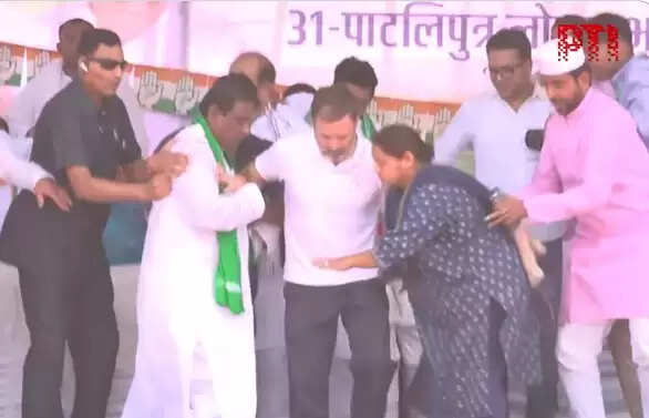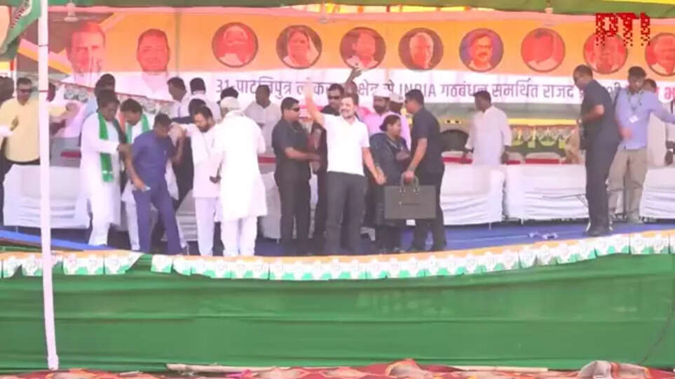#WATCH | Bihar: A portion of the stage partially caves in during Rahul Gandhi's rally in Paliganj pic.twitter.com/wQ2mZnWgCH