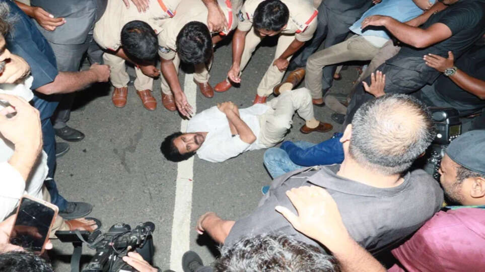 சந்திரபாபு நாயுடு கைது- நடிகர் பவன் கல்யாண் சாலையில் படுத்து போராட்டம்