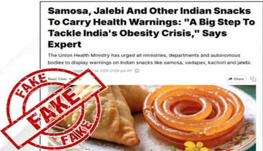 இதுதொடர்பாக மத்திய அரசின் அதிகாரப்பூர்வ எஸ்க் தளத்தில்,”சமோசா, ஜிலேபி மற்றும் லட்டு போன்ற இந்திய சிற்றுண்டிகளுக்கு எதிராக சுகாதார அமைச்சகம் சுகாதார எச்சரிக்கைகளை வெளியிட்டுள்ளதாக சில ஊடக அறிக்கைகள் கூறுகின்றன.