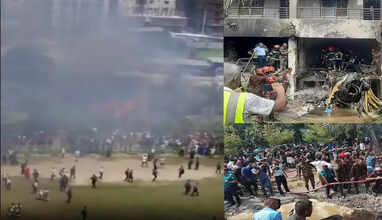 வங்கதேசத்தின் டாக்காவில் உள்ள மைல்ஸ்டோன் பள்ளி வளாகத்தில் விமானப்படையின் பயிற்சி விமானமான F-7 BGI இன்று பிற்பகல் சுமார் ஒரு மணியளவில் விழுந்து தீப்பிடித்தது. விமானம் ஒரு கட்டிடத்தின் பக்கவாட்டில் மோதியதால், அதன் சுவர்கள் மற்றும் இரும்பு கிரில்களுக்கு சேதம் ஏற்பட்டது. இந்த விபத்தில் உயிரிழந்தோர் எண்ணிக்கை 19ஆக உயர்ந்துள்ளது. இந்த விபத்தில் 100க்கும் மேற்பட்டோர் காயமடைந்த நிலையில், மீட்பு பணிகள் தீவிரமாக நடைபெற்றுவருகிறது.