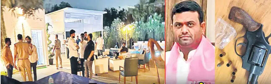 பண்ணை வீட்டில் நடைபெற்ற விருந்தில் துப்பாக்கிச் சூட்டுக்குப் பயன்படுத்தப்பட்ட உரிமம் பெற்ற துப்பாக்கி ரித்தீஷ் ரெட்டிக்கு சொந்தமானது என போலீசார் அடையாளம் கண்டுள்ளனர்.போதைப்பொருள் விருந்தில் தண்டூரைச் சேர்ந்த முன்னாள் எம்.எல்.ஏ. பைலட் ரோஹித் ரெட்டி, புட்டா மகேஷ் குமார் யாதவ் ஏலூரு தொகுதி எம்.பி., நமித் சர்மா, எம். ரமேஷ், வி. ஷ்ரவன் குமார், விஜய் கிருஷ்ணா, கௌஷிக் ரவி, ஷெரீப் ரெட்டி, அர்ஜுன் ரெட்டி, ரித்தீஷ் ரெட்டி, பிரியங்கா ரெட்டி ஆகியோர் கைது செய்யப்பட்டனர். பறிமுதல் செய்த போதை மருந்து