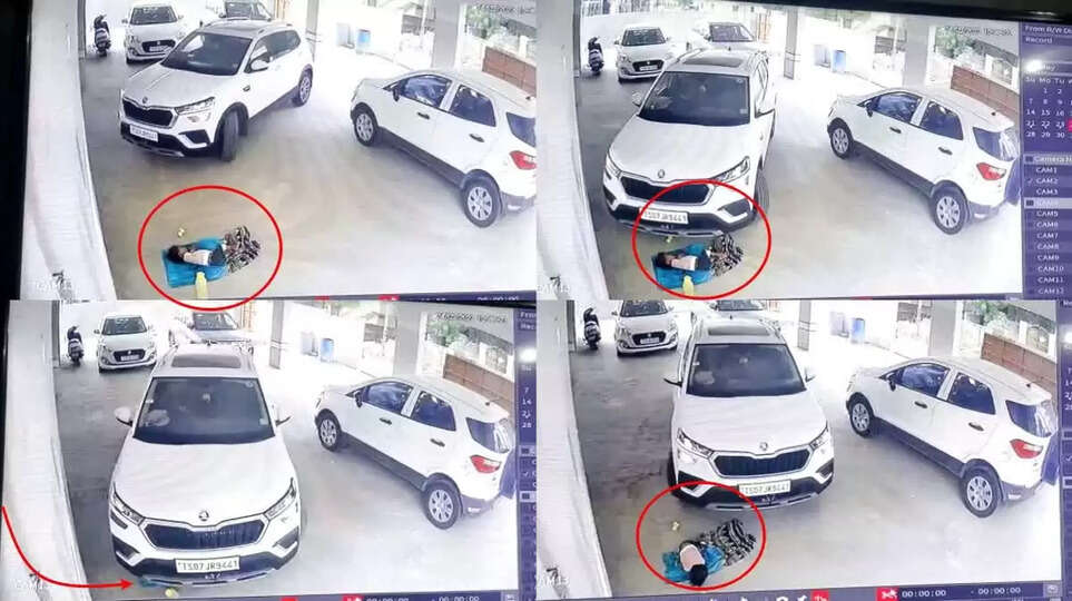 வாகனம் நிறுத்துமிடத்தில் படுக்க வைத்திருந்த புலம்பெயர்ந்த தொழிலாளியின் குழந்தை ஏறி இறங்கிய காரின் பதைபதைக்க வைக்க சிசிடிவி காட்சிகள் வெளியாகி பரபரப்பை ஏற்படுத்தியுள்ளன.