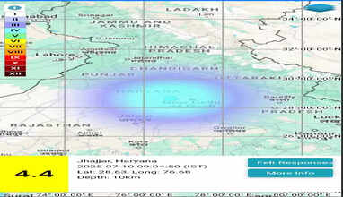 மேலும், ஹரியானாவின் குராவாரா பகுதியிலும் நிலநடுக்கம் மையம் கொண்டிருந்ததாகவும், பூமியின் மேற்பரப்பிலிருந்து 10 கி.மீ ஆழத்தில் ஏற்பட்டதாகவும் புவியியல் மையம் தெரிவித்திருக்கிறது. நிலநடுக்கம் ரிக்டர் அளவுகோலில் 4.4 ஆக பதிவாகியுள்ளதாக தேசிய நிலநடுக்க அறிவியல் மையம் தெரிவித்துள்ளது.