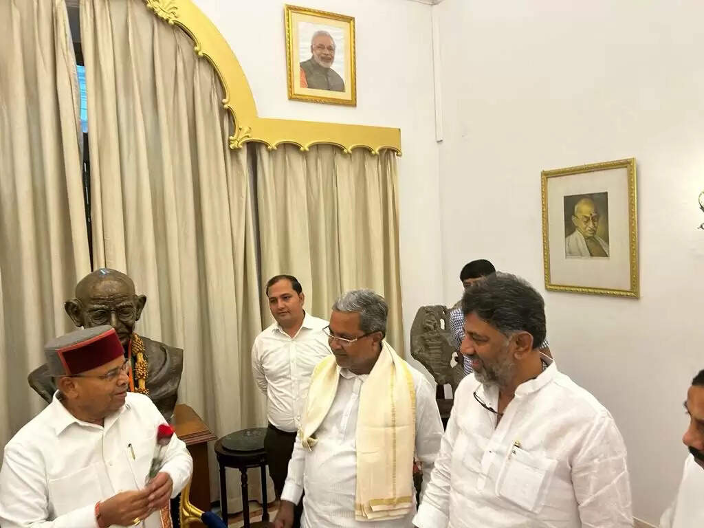 கர்நாடகாவில் ஆட்சிமையக்க ஆளுநரை சந்தித்து சித்தராமையா உரிமை கோரினார்.