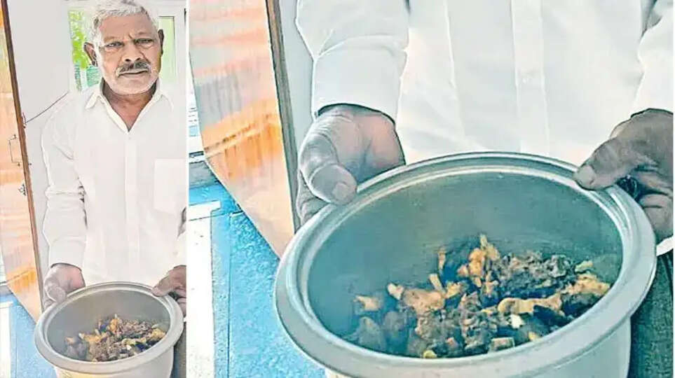 ஆந்திர மாநிலம் அனந்தபூர் மாவட்டம், தாடிபத்ரி பகுதியைச் சேர்ந்தவர் சோடாலா ஹாஜி. இவர் உகாதியை முன்னிட்டு அப்பகுதியில் உள்ள ஒரு கடையிலிருந்து ஆட்டிறைச்சி (மட்டன்) வாங்கியுள்ளார். வீட்டிற்குச் சென்று 'தலைக்கறி' சமைக்கத் தொடங்கியுள்ளார். ஆனால், நீண்ட நேரம் சமைத்தும் இறைச்சி வேகாமல் கல்லுப் போலவே இருந்துள்ளது. கிட்டத்தட்ட 20 முறைக்கு மேல் விசில் விட்டும், இறைச்சி வேகாததைக் கண்டு ஆத்திரமடைந்த ஹாஜி, சமைத்த குக்கரை அப்படியே கையில் எடுத்துக்கொண்டு காவல் நிலையத்திற்குச் சென்றார். காவல் நிலைய இன்ஸ்பெக்டர் ஆனந்த் ராவ் முன்னிலையில் புகாரை வைத்தார். பணம் கொடுத்து கறி வாங்கினேன் ஆனால், எத்தனை முறை சமைத்தாலும் இது வேகவே மாட்டேன் என்கிறது. கடைக்காரர் என்னிடம் தரமற்ற கறியை விற்று ஏமாற்றிவிட்டார் என்று அவர் முறையிட்டார். இதைக் கேட்டு அங்கிருந்த போலீசார் ஒரு நிமிடம் திகைத்துப் போனார்கள். புகாரின் வினோதத்தைக் கண்டு சிரிப்பதா அல்லது சீரியஸாக எடுப்பதா என போலீசார் பிறகு அந்த இறைச்சி விற்பனையாளரை உடனடியாக காவல் நிலையத்திற்கு வரவழைத்தனர். அவரிடம் விசாரணை நடத்தியதில், ஒருவேளை அந்த ஆடு மிகவும் வயதானதாக இருந்திருக்கலாம், அதனால் இறைச்சி வேகாமல் இருந்திருக்க வாய்ப்புள்ளது எனத் கூறினார்.