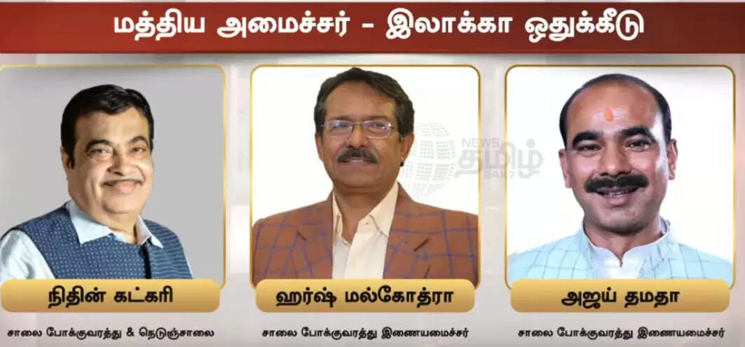 மத்திய அமைச்சர்களின் இலாக்காக்கள் இதுவரை ஒதுக்கப்படாத நிலையில், பிரதமர் மோடி தலைமையில் இன்று மாலை அமைச்சரவை கூட்டம் நடைபெற்றது. அப்போது புதிய அமைச்சர்களுக்கு இலாகாக்கள் அறிவிக்கப்பட்டன. அதன்படி, சாலைப் போக்குவரத்து, நெடுஞ்சாலைத்துறை அமைச்சராக நிதின் கட்கரி தொடர்கிறார்.