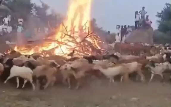 ஆந்திராவில் கால்நடைகள் நோய், நொடியின்றி வாழ திருவிழா நடத்தப்பட்டது. அதில் ஆடுகள் அக்னி குண்டத்தை சுற்றி வலம் வந்தன.