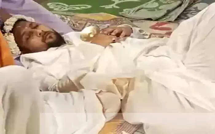 மதுபோதையில் தள்ளாடியபடியே அமர்ந்திருந்த மணமகன், ஒரு கட்டத்தில் மேடையில் அமர்ந்திருக்க முடியாமல் திடீரென்று சாய்ந்து இருக்கிறார். அப்போது ஒருவர் பிடித்துக் கொள்ள அவரின் மடியிலே படுத்து தூங்கி இருக்கிறார். இதைப் பார்த்து அதிர்ச்சி அடைந்த மணமகள் மாப்பிள்ளை நடவடிக்கை குறித்து பெற்றோரிடம் புகார் அளிக்க பெற்றோரும் உன் விருப்பம் என்று சொல்ல, திருமணத்தை உடனே நிறுத்தி இருக்கிறார் மணமகள்.