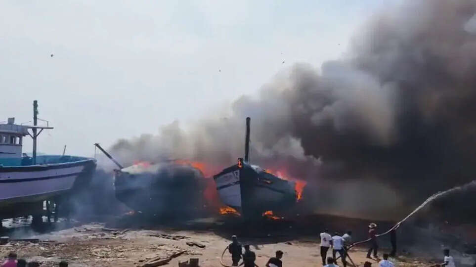 துறைமுகத்தில் நிறுத்தி வைக்கப்பட்டிருந்த படகுகளில் தீ பிடித்து பயங்கர விபத்து