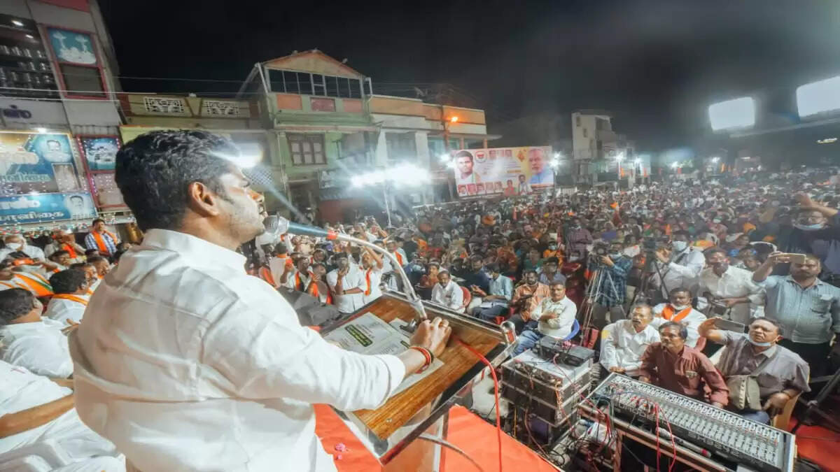இது ஆட்சி மாற்றத்திற்கான தேர்தல் அல்ல. மக்கள் சேவைக்கான ஒரு தேர்தல். 5 சதவீதம் பேருக்கு நோய் தடுப்பு ஊசி போட்டு இன்று நாம் அனைவரும் பாதுகாப்பாக இருப்பதற்கு காரணம் பாரத பிரதமர் மோடி. இதற்கு தமிழக மக்கள் நன்றி சொல்ல வேண்டாமா? அந்த நன்றிக்காக நீங்கள் பாஜகவிற்கு வாக்களியுங்கள். பாஜக வேட்பாளர்கள் வெற்றி பெற்று மாமான்றத்திற்கு சென்றால் அவர்கள் ஊழல் செய்ய மாட்டார்கள். கடைசி மனிதனுக்கும் கிடைக்க வேண்டிய நலத்திட்ட உதவிகளை வாங்கி தருவார்கள். அதனால் நீங்கள் அனைவரும் தாமரைக்கு வாக்களிக்க வேண்டும்" என்றார்.