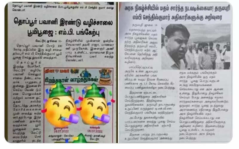 செய்தி 2 : நேற்று, பாப்பிரெட்டிப்பட்டி அருகே உள்ள ஆலாபுரம் ஏரி சீரமைப்பு பணி துவக்க விழாவில் பூஜை நடத்தக்கூடாது என்று தடுக்கிறார். ஒரே நாளில் செக்கானூரில் பூஜை செய்தால் ஏற்றுக்கொள்ளும் இவர் ஆலாபுரத்தில் பூஜை செய்ய தடுத்தது ஏன்?