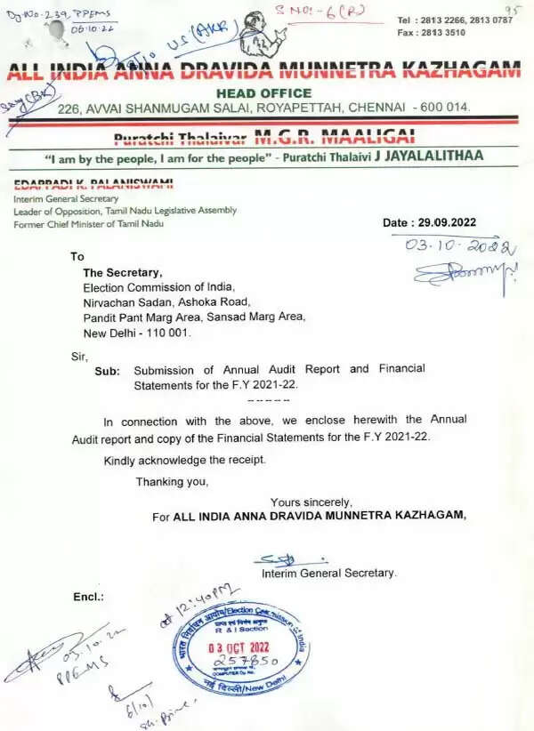 அதிமுக பொதுக்குழு தீர்மானங்களை தேர்தல் ஆணையம் ஏற்காத சூழலில், #AIADMK-வின் வரவு - செலவு குறித்து @EPSTamilNadu அவர்கள் தாக்கல் செய்த 29.09.2022 தேதியிட்ட, 03.10.2022 அன்று File செய்யப்பட்ட, "Audited Annual Accounts FY 2021-22", தேர்தல் ஆணைய பக்கத்தில் பதிவேற்றப்பட்டுள்ளது. pic.twitter.com/nStVJfroK7