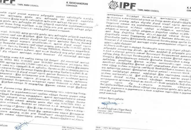 அந்தப் புகார் கடிதத்தில், ’’நான் தற்போது ஐக்கிய அரபு அமீரகத்தின் ஐபிஎப் பிஜேபி தமிழ்நாடு கவுன்சிலிங் ஒருங்கிணைப்பாளராக 16. 10. 2022 முதல் சேவை செய்து வருகிறேன். கடந்த 25 வருடங்களாக நான் துபாயில் வசிக்கும் தமிழர். என் சொந்த ஊர் தமிழ்நாட்டில் கள்ளக்குறிச்சி.
