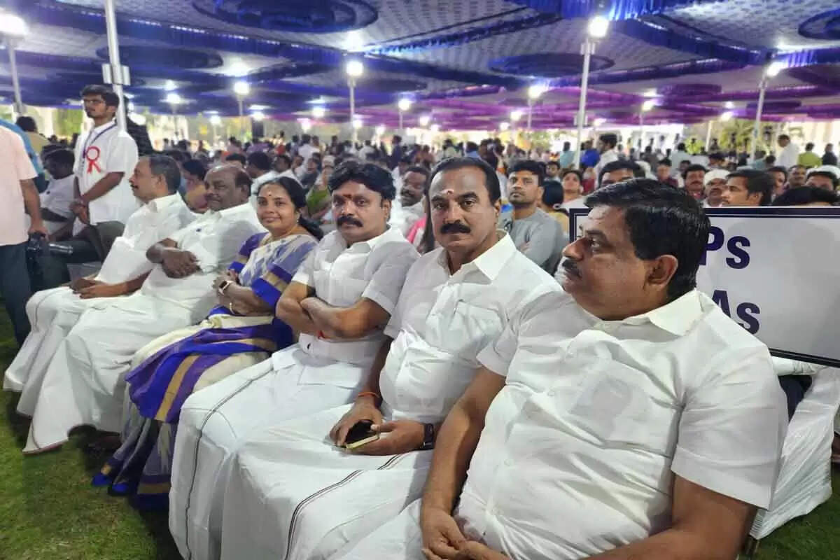 திமுக சார்பில் முதல்வரோ, அமைச்சர்களோ, எம்பி மற்றும் எம்எல்ஏக்களோ யாரும் இந்த விழாவில் பங்கேற்கவில்லை.