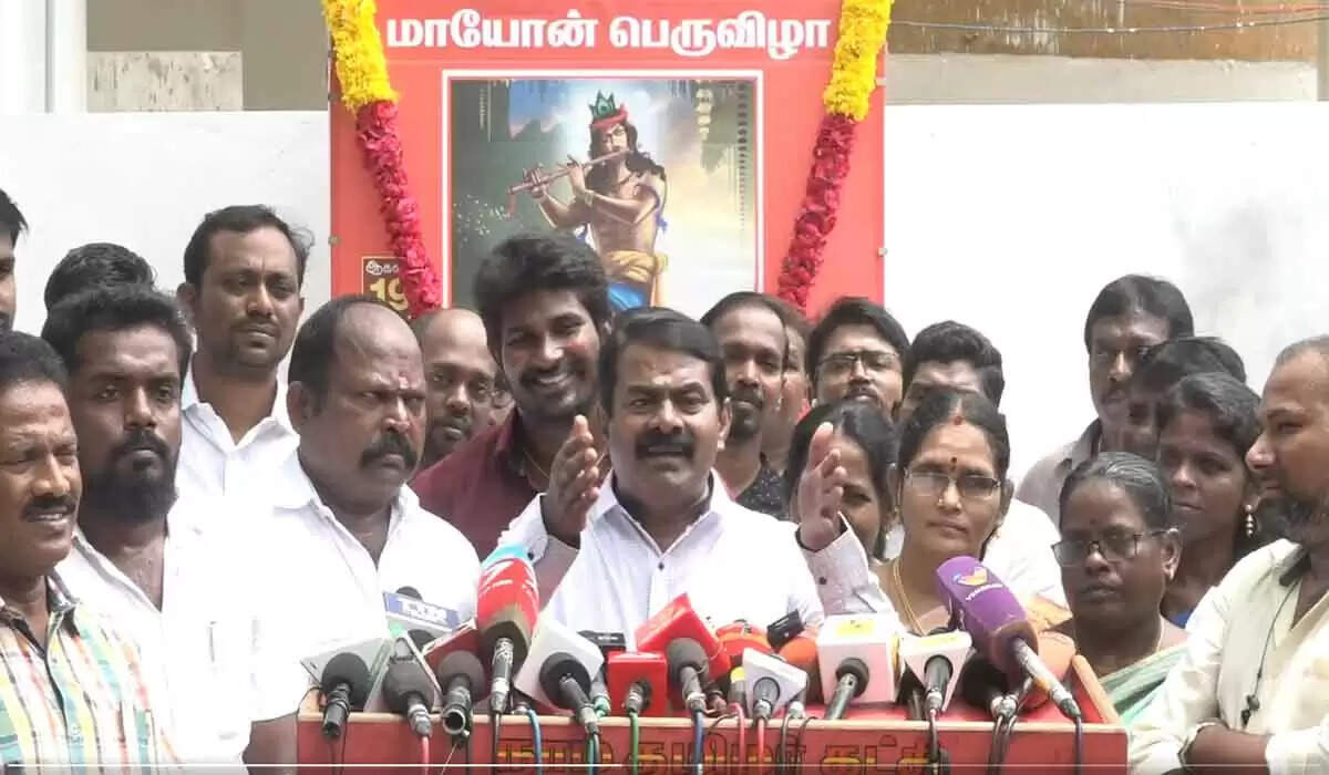 19-8-2022 நாம் தமிழர் கட்சியின் வீரத்தமிழர் முன்னணி சார்பாக, கட்சித் தலைமை அலுவலகத்தில் மாயோன் பெருவிழா நடைபெற்றது. நாம் தமிழர் கட்சியின் தலைமை ஒருங்கிணைப்பாளர்  சீமான் இந்த நிகழ்வில் பங்கேற்றார்.