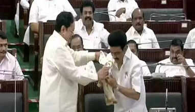 அதனால் உலகின் பல்வேறு பகுதிகளில் இருக்கின்ற முதலீட்டாளர்களையும் தமிழ்நாடு ஈர்க்கும். சுகாதாரம், வறுமை ஒழிப்பு மற்றும் தொழில்துறை முன்னேற்றம் என எல்லாத் துறையிலும் இந்த 10 மாத காலத்தில் நூறு ஆண்டுகள் அனுபவத்தோடு செய்து இருக்கிறார். அவரை நான் மனதார பாராட்டுகிறேன். இந்த அவையில் மட்டும் இப்போது தலைவர் கருணாநிதி இருந்திருந்தால் முதல்வரின் பணியை பார்த்து கண்ணீர் வடித்திருப்பார் மற்றவர்கள் பார்ப்பதற்கு முன்பு அந்த கண்ணீரை அவர் துணியால் துடைக்கும் காட்சியை நான் நினைத்துப் பார்க்கிறேன் என்று உருக்கமுடன் பேசினார். பின்னர் அமைச்சர் துரைமுருகன் முதலமைச்சர் முக ஸ்டாலினுக்கு பொன்னாடை போர்த்தி துபாய் பயணத்திற்கு வாழ்த்துக்களை தெரிவித்துக் கொண்டார்.