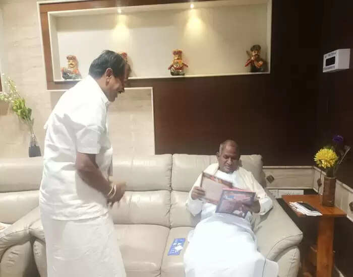 அழைப்பிதழ் மற்றும் புத்தகம் வழங்கி, இளையராஜாவிடம்  ஆசிகள் பெற்றோம் என்றும் அவர் நெகிழ்ந்து கூறியிருக்கிறார்.