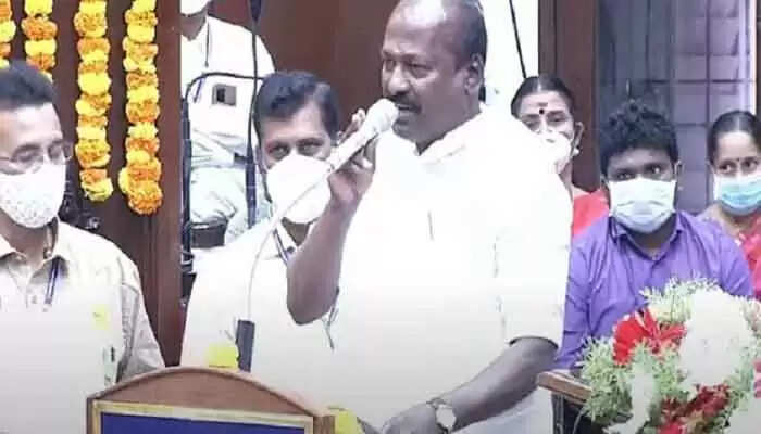 இது கச்சேரியா? என்று எம்.ஜி.ஆர். பாடலை பாடி பதவியேற்றதால் சலசலப்பு எழுந்தது.