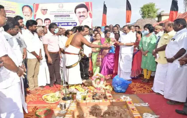 இந்த நிலையில், அரசு விழாக்களில் திமுக அமைச்சர்கள், எம்.எல்.ஏக்கள் நடத்திய பூமி பூஜை குறித்த படங்களும் அது குறித்த தகவல்களும் வைரலாகி வருகின்றன. நாளிதழும் செய்தி வெளியிட்டிருக்கிறது.