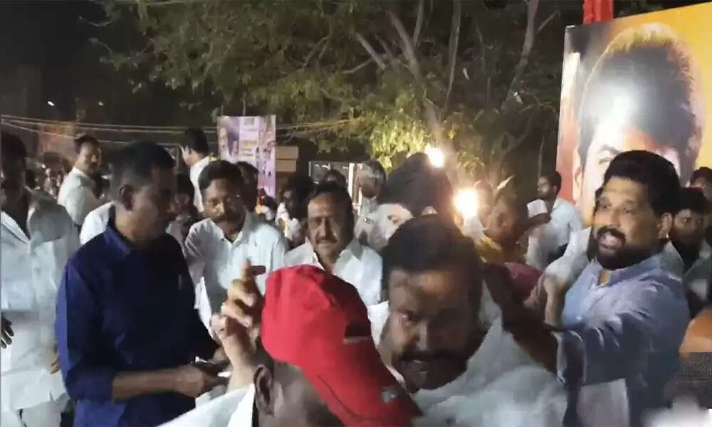 உதயநிதி ஸ்டாலின் அருகே நகர்புற வளர்ச்சி துறை அமைச்சர் கே. என். நேரு நின்று இருந்தார். வரிசையாக திமுக தொண்டர்கள் சென்று உதயநிதிக்கு சால்வை கொடுத்து அவருக்கு வணக்கம் வைத்து விட்டு சென்றார்கள். ஒரு தொண்டர் உதயநிதிக்கு கை கொடுக்க முயன்ற போது அமைச்சர் நேரு அவரின் தலையில் ஓங்கி அடித்து சட்டையை பிடித்து தள்ளினார். அப்போதும் ஆத்திரம் தீராமல் பின்பக்கமாக கழுத்தை பிடித்து அங்கிருந்து தள்ளினார்.