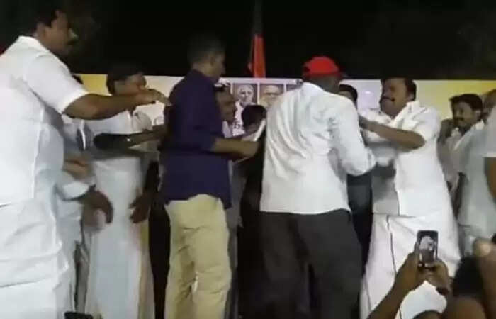 திமுகவினரின் சுயரூபம் அடிக்கடி இப்படி வெளிப்பட்டு விடுகிறது உபிஎஸ் இதை வரவேற்பார்களா ?எதிர்பார்களா? என்று பலரும் கண்டனம் தெரிவித்து வருகின்றனர். ஒருவர் கல்லால் அடிக்கிறார் ஒருவர் கையால் அடிக்கிறார் . உங்கள் பிழைப்பு நாய் பிழப்பாக இருக்கும் போல தெரிகிறது. பாவம் உபிஸ் என்று வீடியோவை பார்த்து கமெண்ட் அடித்து வருகின்றார்கள்.