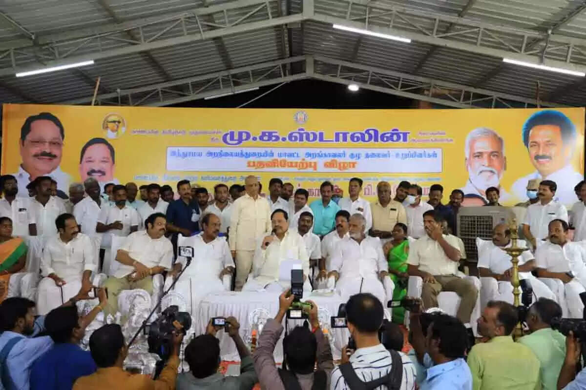 வேலூரில் இந்து சமய அறங்காவலர் குழு நிர்வாகிகள் பதவி ஏற்பு விழா நேற்று முன் தினம் இரவு நடந்தது. வேலூர் செல்லியம்மன் கோவிலில் நடந்த இந்த விழாவில் இந்து சமய அறநிலையத்துறை அமைச்சர் பி. கே. சேகர்பாபு தலைமை வகித்தார். நீர்வளத்துறை அமைச்சர் துறைமுருகன் பங்கேற்றார்.