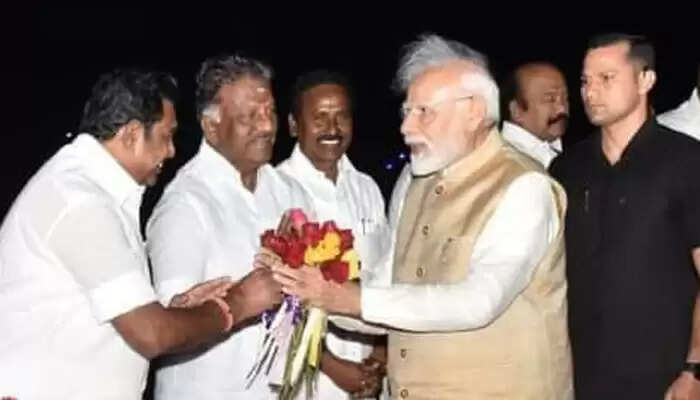ஓ .பன்னீர்செல்வத்துடன் ரவீந்திரநாத் எம்பி, தர்மர் எம்பி ,மனோஜ் பாண்டியன் உள்ளிட்டோரும் வந்திருந்தனர். ஆளுநர் ரவி, அமைச்சர்கள் தங்கம் தென்னரசு, சாத்தூர் ராமச்சந்திரன், பி. மூர்த்தியும், மற்றும் பாஜகவினர் அதிகாரிகள் உட்பட 42 பேர் பிரதமரை வரவேற்க அனுமதி அளிக்கப்பட்டிருந்தது. பிரதமர் தன்னை வரவேற்க வந்தவர்களிடம் ஒவ்வொருவராக சந்தித்து பூங்கொத்து வாங்கிக் கொண்டே வந்தவர் , எடப்பாடி பழனிச்சாமி இடம் முதலில் பூங்கொத்து பெற முயன்ற பிரதமர், ஓ. பன்னீர்செல்வம் வரிசையில் சற்று தள்ளி இருப்பதை கவனித்து அருகே வருமாறு அவரை அழைத்திருக்கிறார். பின்னர் பன்னீர் செல்வத்திடமும் பழனிச்சாமியிடமும் ஒரே நேரத்தில் பூங்கொத்தை பெற்றுக் கொண்டிருக்கிறார்.
