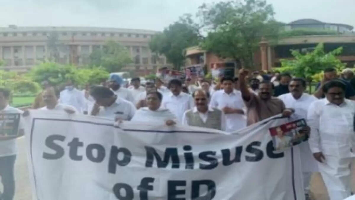 நேஷனல் ஹெரால்டு வழக்கு தொடர்பான விசாரணைக்காக காங்கிரஸ் கட்சியின் இடைக்கால தலைவர் சோனியா காந்தி நேற்று அமலாக்கத்துறை அலுவலகத்துக்கு சென்றார். அங்கு சோனியா காந்தியிடம் அமலாக்கத்துறை அதிகாரிகள் விசாரணை நடத்தினர். சோனியா காந்தி அமலாக்கத்துறை அலுவலகத்துக்கு செல்வதற்கு முன்னதாக, நாடாளுமன்ற மக்களவையில் சில எதிர்கட்சி உறுப்பினர்கள் சோனியா காந்தியிடம் அமலாக்கத்துறை விசாரணை நடத்துவதற்கு எதிர்ப்பு தெரிவித்து கோஷமிட்டனர்.