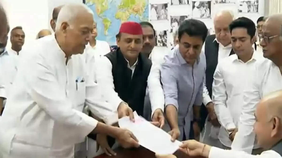 இந்நிலையில், எதிர்க்கட்சிகளின் பொது வேட்பாளரான யஷ்வந்த் சின்ஹா நேற்று குடியரசு தலைவர் தேர்தலில் போட்டியிடுவதற்காக வேட்புமனு தாக்கல் செய்தார். அப்போது காங்கிரஸ் கட்சியின் முன்னாள் தலைவர் ராகுல் காந்தி, சரத் பவார், அகிலேஷ் யாதவ் மற்றும் பரூக் அப்துல்லா உள்ளிட்ட எதிர்க்கட்சிகளின் முக்கிய தலைவர்கள் உடன் இருந்தனர். குடியரசு தலைவர் தேர்தல் தொடர்பாக ராகுல் காந்தி கூறுகையில், இது இரண்டு தனி நபர்களுக்கு இடையே நடக்கும் சண்டை அல்ல, இரண்டு சித்தாந்தங்களுக்கு இடையே நடக்கும் யுத்தம் என தெரிவித்தார்.