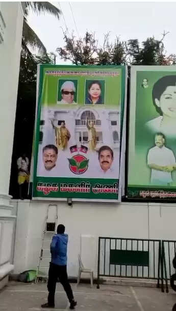அதிமுக அலுவலகத்தில் மீண்டும் ஓ.பி.எஸ் படத்துடன் பேனர் வைக்கப்பட்டது.