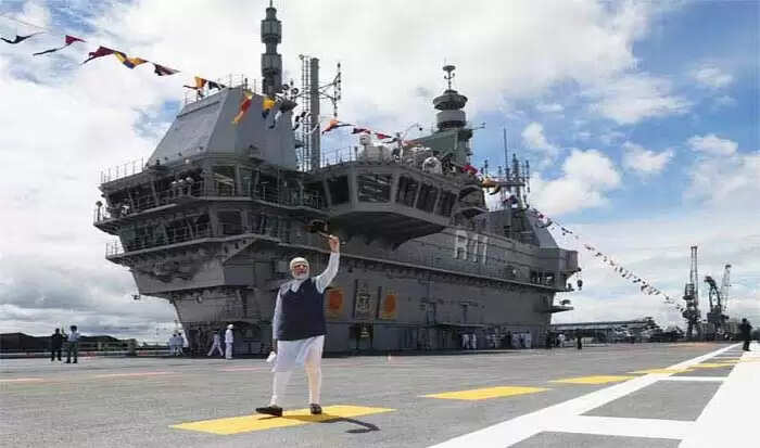 ஐ. என். எஸ் விமானம் தாங்கி போர்க்கப்பலை பிரதமர் மோடி நாட்டுக்கு அர்ப்பணித்த அந்த விழாவில் கேரள முதல்வர் பினராய் விஜயனும் பங்கேற்று இருந்தார். ஆங்கிலேய காரலனித்துவ காலத்தில் இருந்து பயன்படுத்திய கடற்படை கொடியை மாற்றி, மராட்டிய மன்னர் சத்ரபதி சிவாஜி படையினர் பயன்படுத்திய கொடியின் தாக்கத்தில் உருவாக்கப்பட்ட புதிய கொடியை பிரதமர் ஏற்றினார்.
