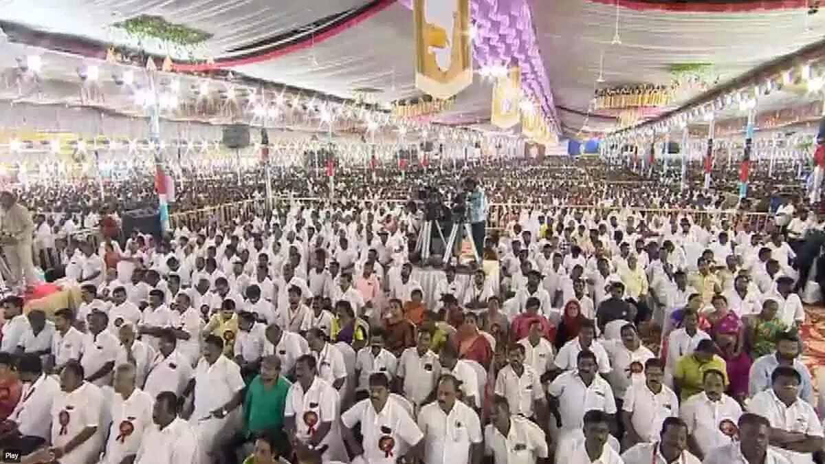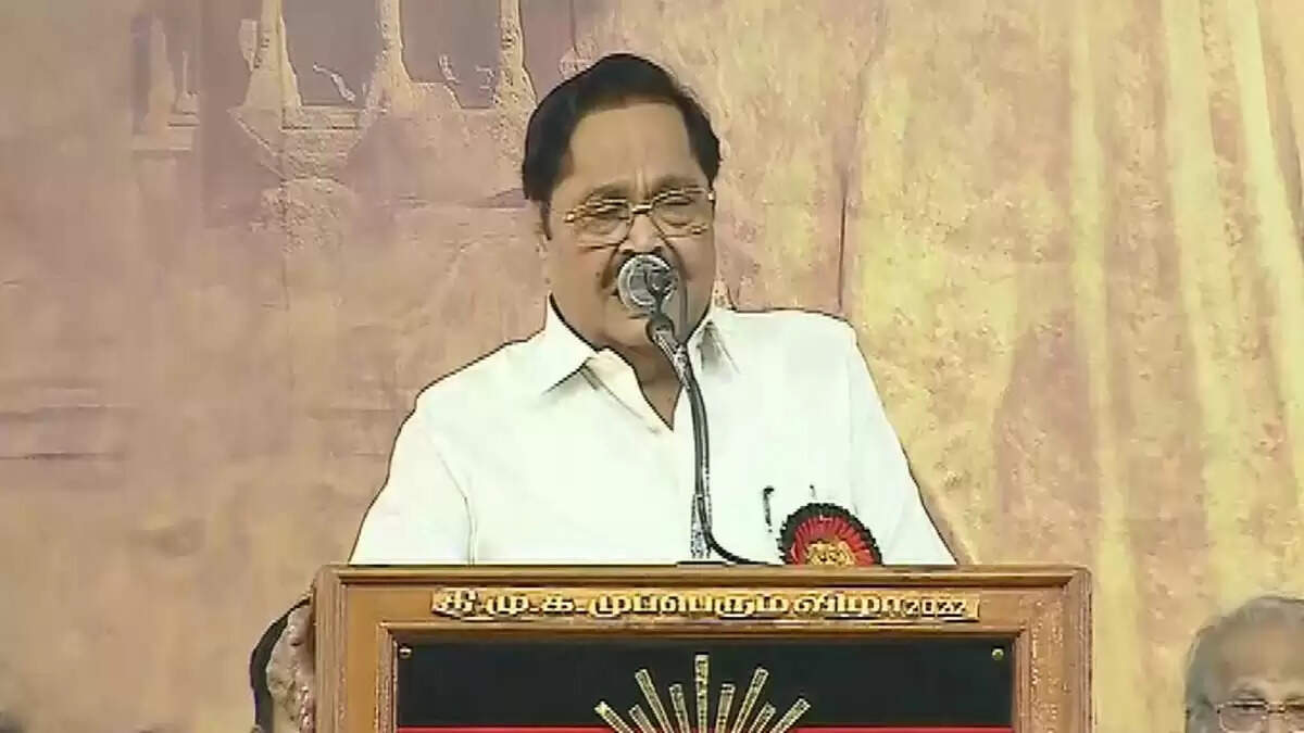 விருதுநகர் அடுத்த பட்டம்புதூரில் திமுக முப்பெரும் விழா நடைபெற்றது. இதில் கட்சியின் பொதுச் செயலாளரும், நீர்வளத்துறை அமைச்சருமான துரைமுருகன் பங்கேற்று பேசினார்.