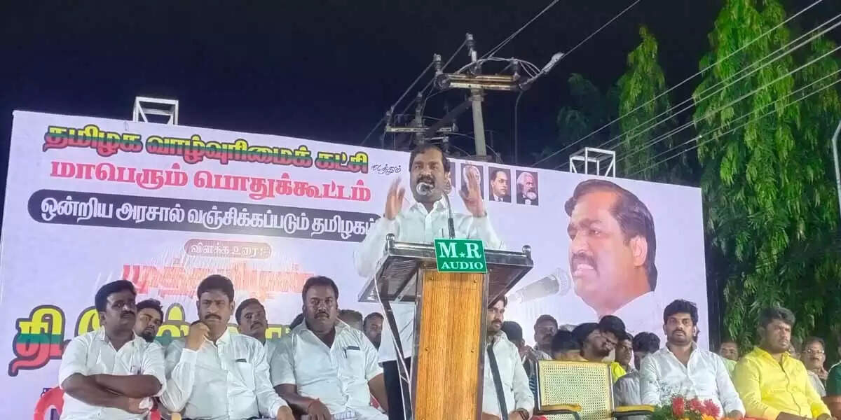 ’மத்திய அரசால் வஞ்சிக்கப்படும் தமிழகம்’ என்கிற தலைப்பில் சேலம் மாவட்டத்தில் தமிழக வாழ்வுரிமை கட்சியின் சார்பில் பொதுக்கூட்டம் நடந்தது. கட்சியின் நிறுவனத் தலைவர் வேல்முருகன் இக்கூட்டத்தில் கலந்து கொண்டு பேசியன. ர் அப்போது அவர், ஒன்றிய அரசால் தமிழகம் எவ்வாறு வஞ்சிக்கப்படுகிறது என்பதை நாம் தினம்தோறும் பார்த்து வருகின்றோம். தினந்தோறும் பயன்படுத்தப்படுகின்ற அத்தியாவசிய பொருட்களின் விலை விண்ணை முட்டும் அளவிற்கு உயர்ந்து கொண்டே செல்கிறது. பாஜக ஆட்சி பணக்காரர்களை மேலும் பணக்காரர்களை உயர்த்துவதில் தான் கவனம் செலுத்தி வருகிறது. நாட்டில் இருக்கும் 130 கோடி மக்களின் வாழ்க்கையை வஞ்சித்து வருகிறது என்று குற்றம் சாட்டினார்.