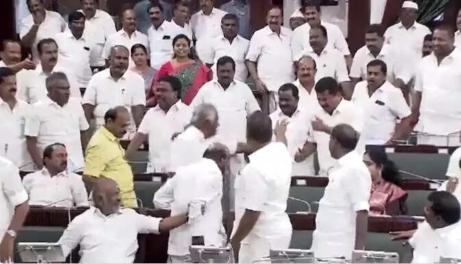 இந்த சூழலில் அதிமுக உறுப்பினர் கோவிந்தசாமிக்கும் மனோஜ் பாண்டியனுக்கும் கடும் வாக்குவாதம் ஏற்பட்டது. சட்டப்பேரவையில் மனோஜ் பாண்டியன் வேட்டியை மடித்து கட்டிக் கொண்டு எதிர்ப்பை காட்ட சென்றதால் பரபரப்பு ஏற்பட்டது. சபாநாயகரின் விளக்கத்தை ஏற்க மறுத்த அதிமுக உறுப்பினர்கள், தொடர்ந்து கூச்சலிட்டு வெளிநடப்பு செய்தனர்.
