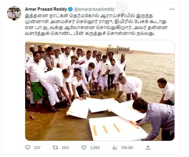 அண்ணாமலையின் ஆதரவாளர் அமர்பிரசாத்ரெட்டி இந்த விவகாரத்தில் ஆரம்பத்தில் இருந்து பதிலடி கொடுத்து வருகிறார். பாஜகவின் நிர்வாகிகள் அதிமுகவில் சேர்ந்து விட்டார்கள் என்றதுமே முதலில் அதிமுக தலைமையை, குறிப்பாக எடப்பாடி பழனிச்சாமியை கடுமையாக விமர்சித்தவர் அவர்தான். அவர் தொடங்கி வைத்தது தான் விவகாரம் இத்தனை பெரிதாகி இருக்கிறது. இந்த நிலையில் செல்லூர் ராஜீவிற்கும் அவர் பதிலடி கொடுத்திருக்கிறார்.