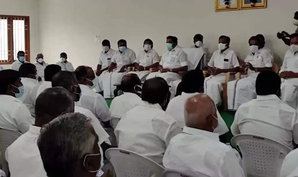 அதிமுக தமிழ் மகன் உசேன், ஜெயக்குமார், நத்தம் விஸ்வநாதன் , சி. வி. சண்முகம் உள்ளிட்ட முக்கிய நிர்வாகிகள் பங்கேற்று உள்ளனர் அதிமுகவில் பொதுச் செயலாளர் தேர்தல் குறித்து முடிவுகள் எடுப்பதற்காக அனைத்து மாவட்ட செயலாளர்களை அழைத்து நாளை ஆலோசனை நடத்த இருக்கிறார் எடப்பாடி. இந்நிலையில் இந்த ஆலோசனை கூட்டம் நடந்து வருகிறது.