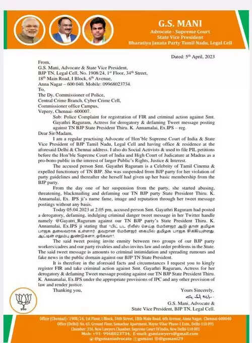 தமிழக பாஜகவின் வழக்கறிஞர் அணியினர் இந்த புகாரை கொடுத்துள்ளனர்.   பின்னர் அண்ணாமலை,  இது தேவையில்லை . புகாரை வாபஸ் பெற்று விடுங்கள் என்று கேட்டுக் கொண்டதை அடுத்து வழக்கறிஞர் அணி துணை தலைவர் ஜி. எஸ். மணி புகாரை வாபஸ் பெற்றதாக தெரிவித்துள்ளார்.