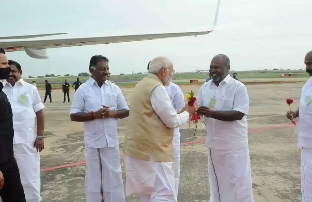 வழியனுப்பும் விழாவில் எடப்பாடி பழனிச்சாமியை பார்த்து பிரதமர் மோடி வணக்கம் செய்திருக்கிறார். அப்போது அங்கு நின்ற ஓ. பன்னீர்செல்வத்தை பார்த்து பிரதமர் மோடி தோளில் தட்டிக் கொடுத்திருக்கிறார்.